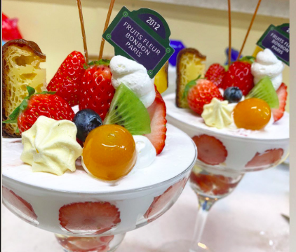 (カクテルグラスに季節のジェラートも入った気まぐれパフェ)